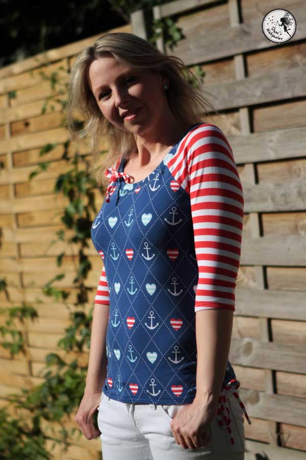 Ein klassisches Raglan-Damenshirt mit raffinierter Seitenschnürung.