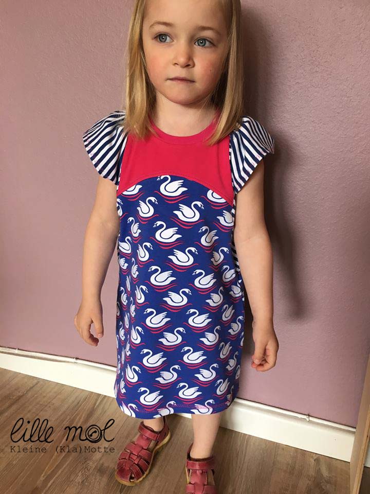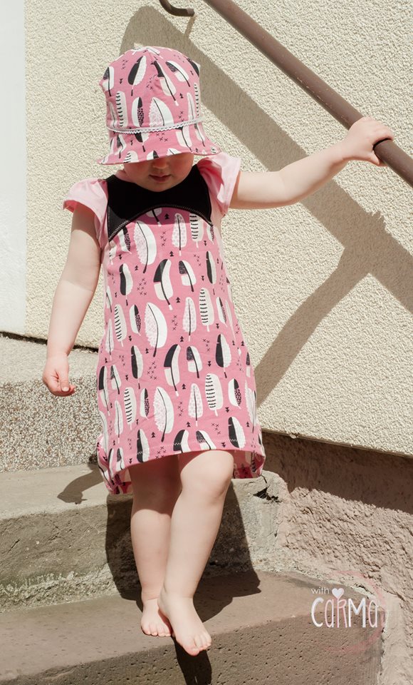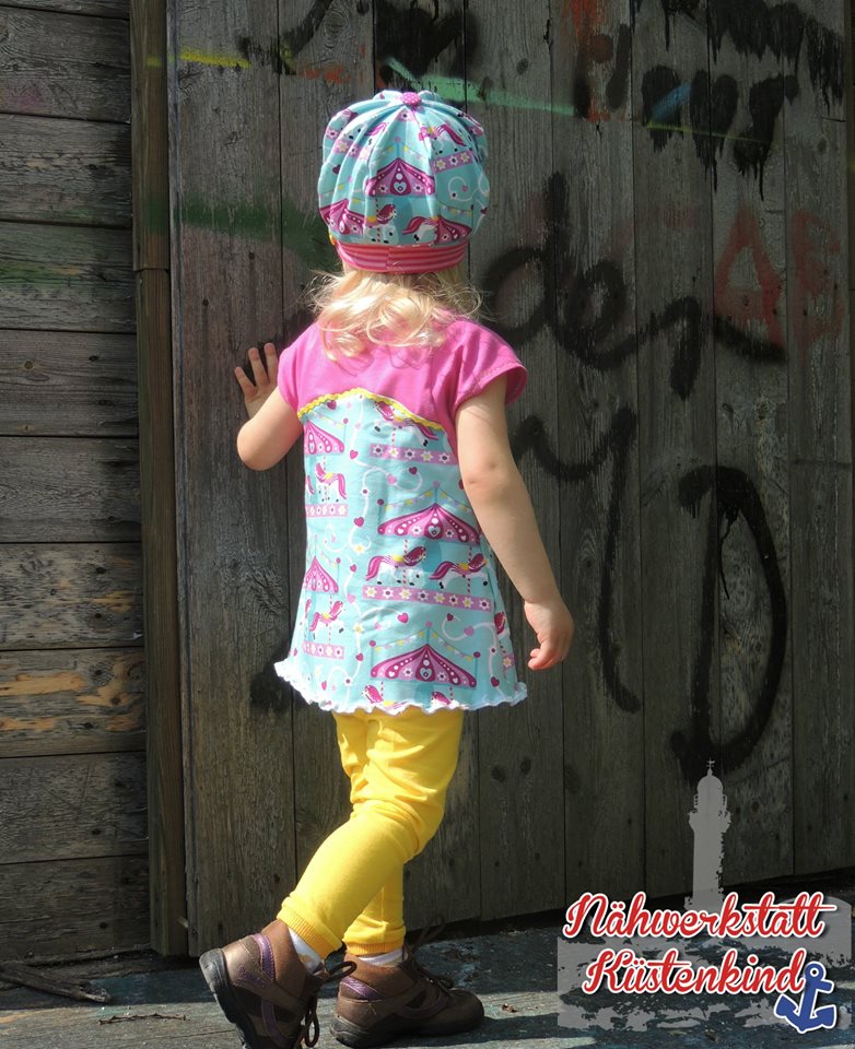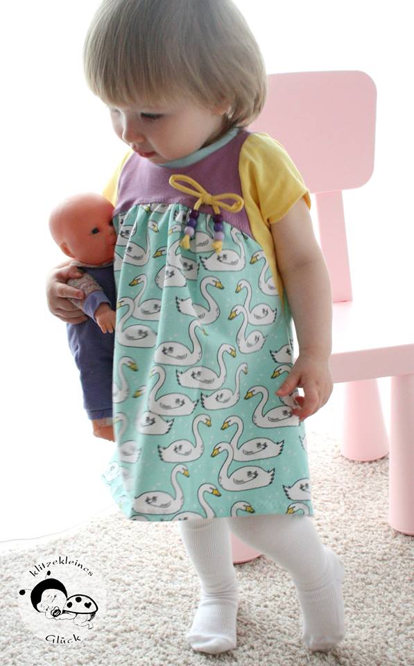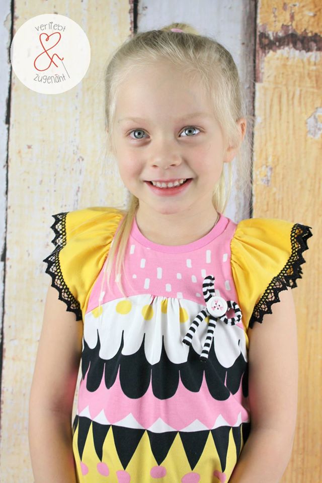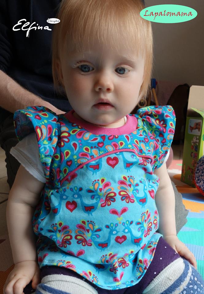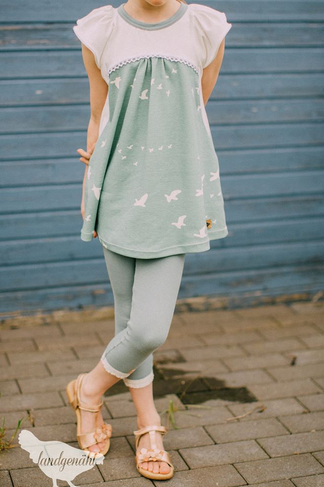 Du kannst ELFINA als Kleid oder als kurzes Tunika-Shirt nähen. Der Schnitt ermöglicht etliche Variationen. So kannst Du Deine ELFINA mit gerafften Flatterärmelchen (Volantärmeln) oder mit normalen Ärmeln, mit gerafftem oder einfachem Vorderteil, mit oder ohne Paspeln , mit Teilungsnähten oder aus einem Stück nähen. Alle Elemente können kombiniert werden, so dass sich aus einem Schnitt viele verschiedene Looks kreieren lassen.