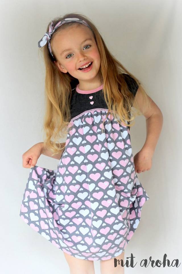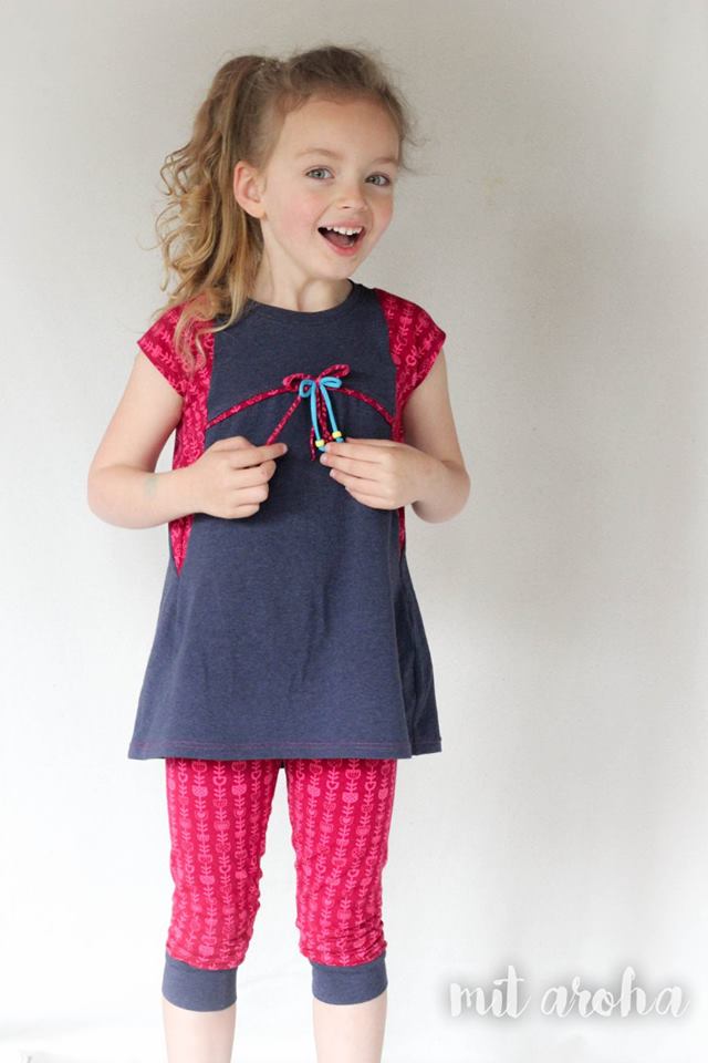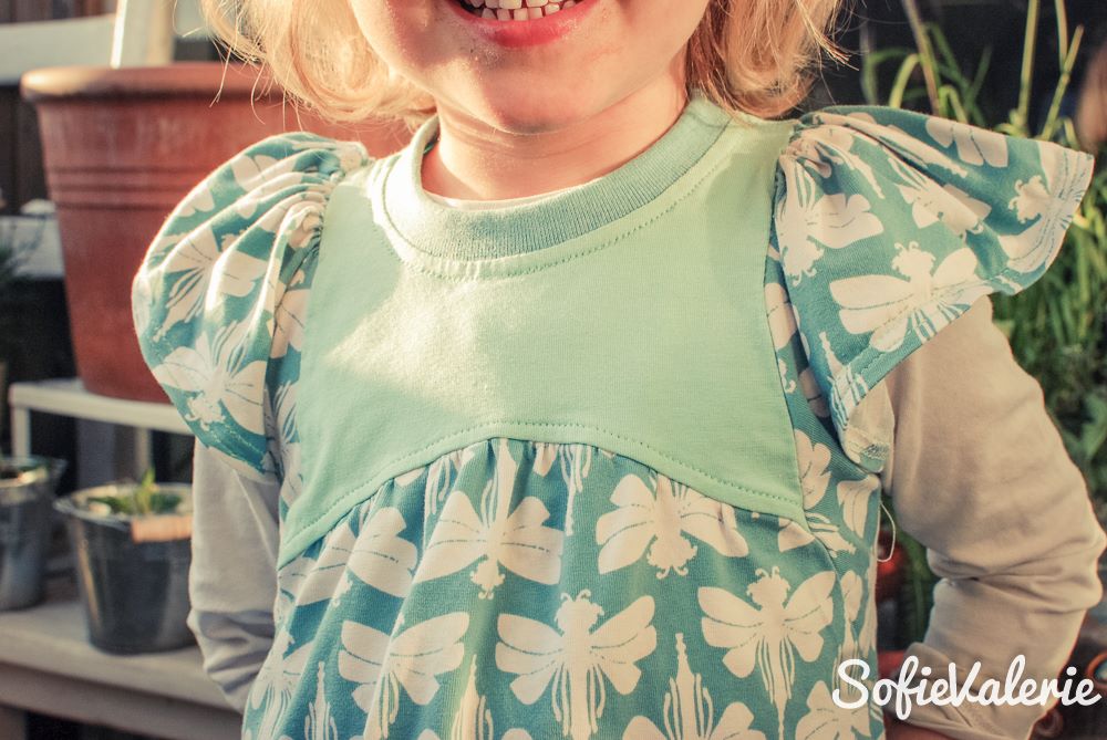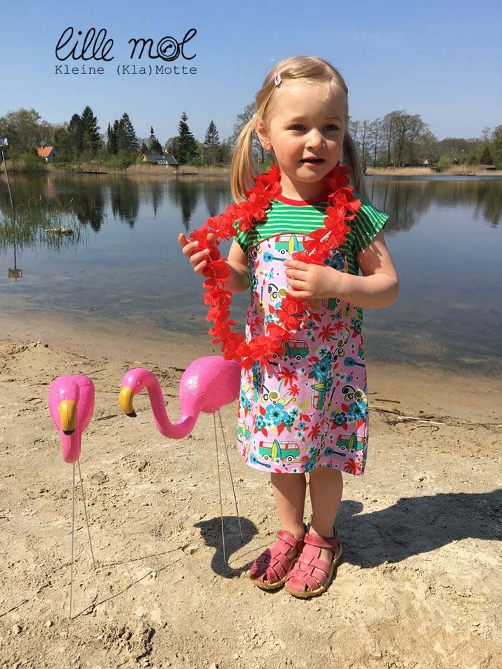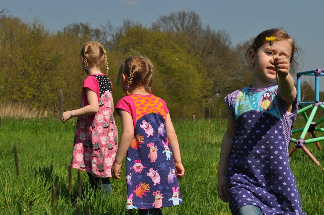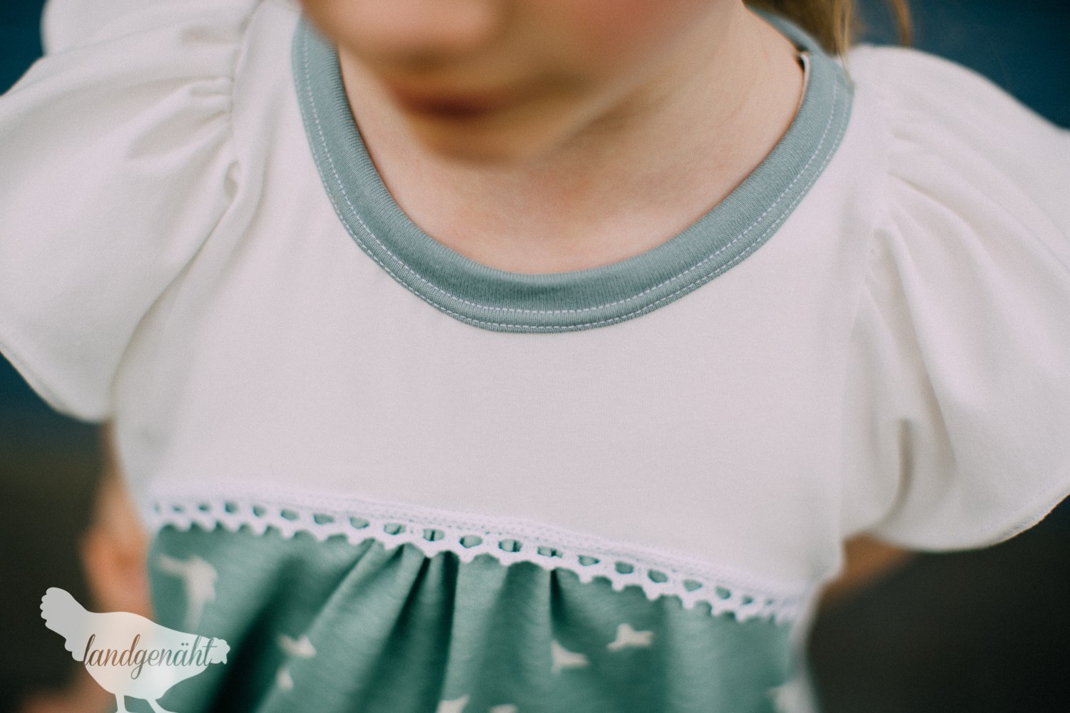 Du kannst ELFINA als Kleid oder als kurzes Tunika-Shirt nähen. Der Schnitt ermöglicht etliche Variationen. So kannst Du Deine ELFINA mit gerafften Flatterärmelchen (Volantärmeln) oder mit normalen Ärmeln, mit gerafftem oder einfachem Vorderteil, mit oder ohne Paspeln , mit Teilungsnähten oder aus einem Stück nähen. Alle Elemente können kombiniert werden, so dass sich aus einem Schnitt viele verschiedene Looks kreieren lassen.