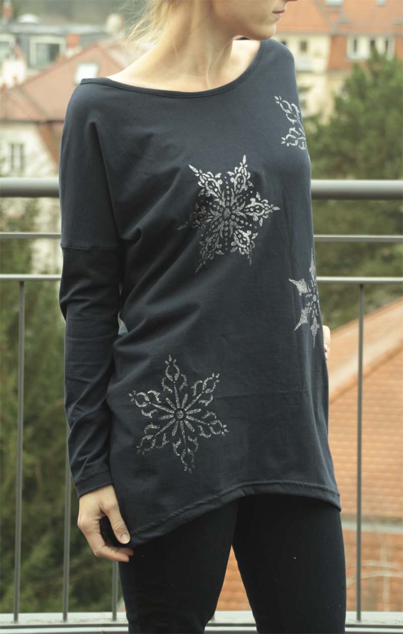 Legera ist ein echter Wohlfühlpulli. Der legere Schnitt des Damenshirts gefällt im aktuellen Oversize-Format mit VoKuHiLa-Optik. Legera ist vorn höher geschnitten und bedeckt hinten das Gesäß. Dieser Schnitt ist perfekt für alle Frauen, die es bequem lieben und dabei vielleicht noch ein paar Pfündchen kaschieren wollen…