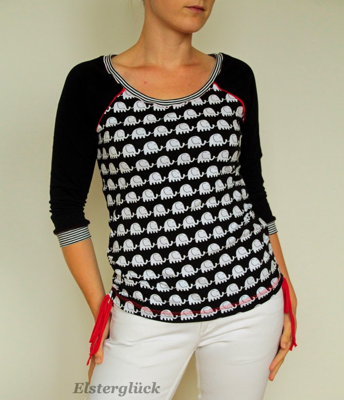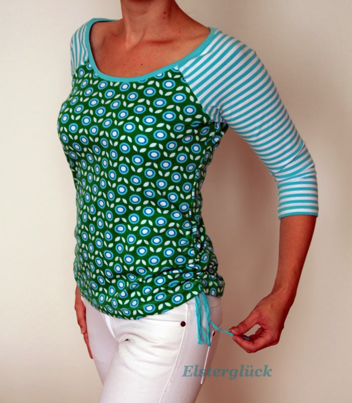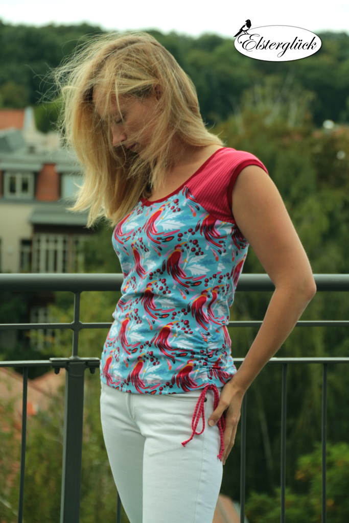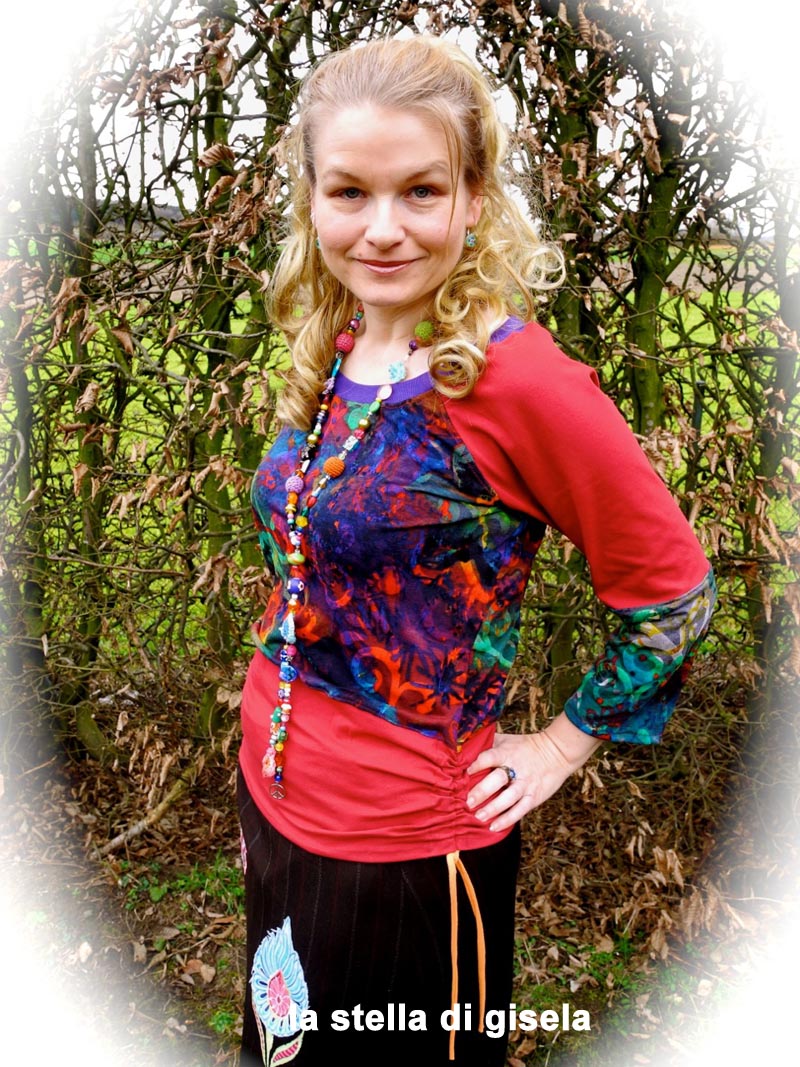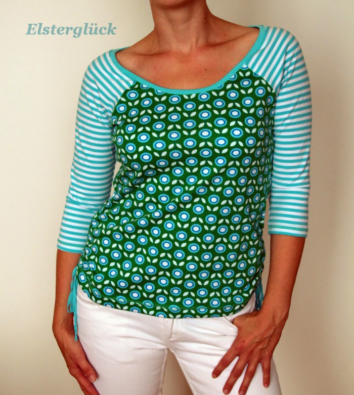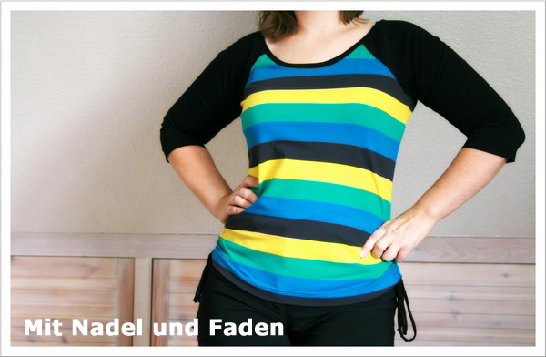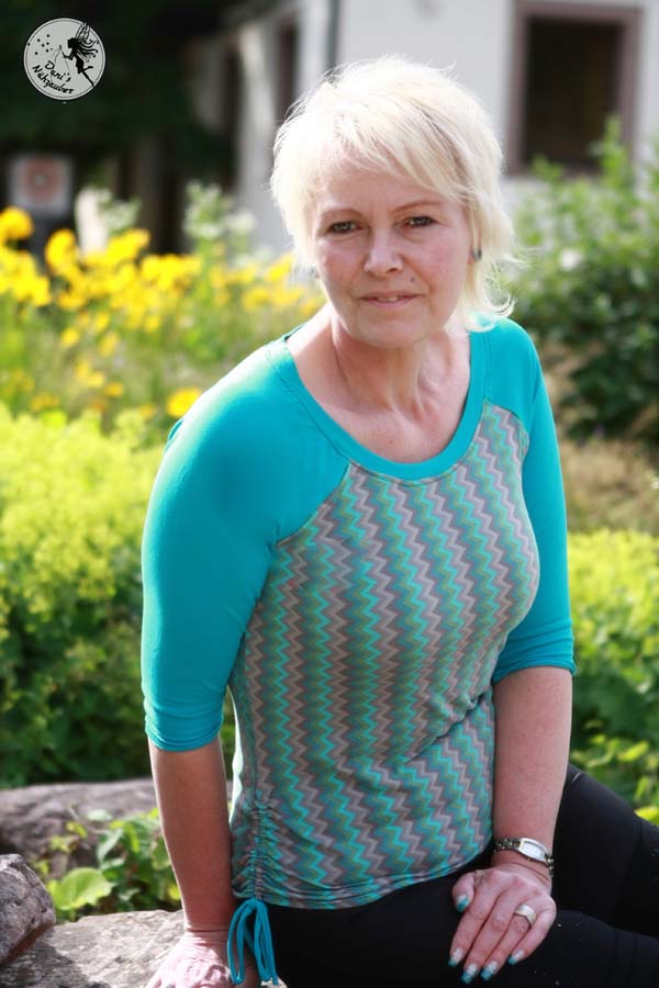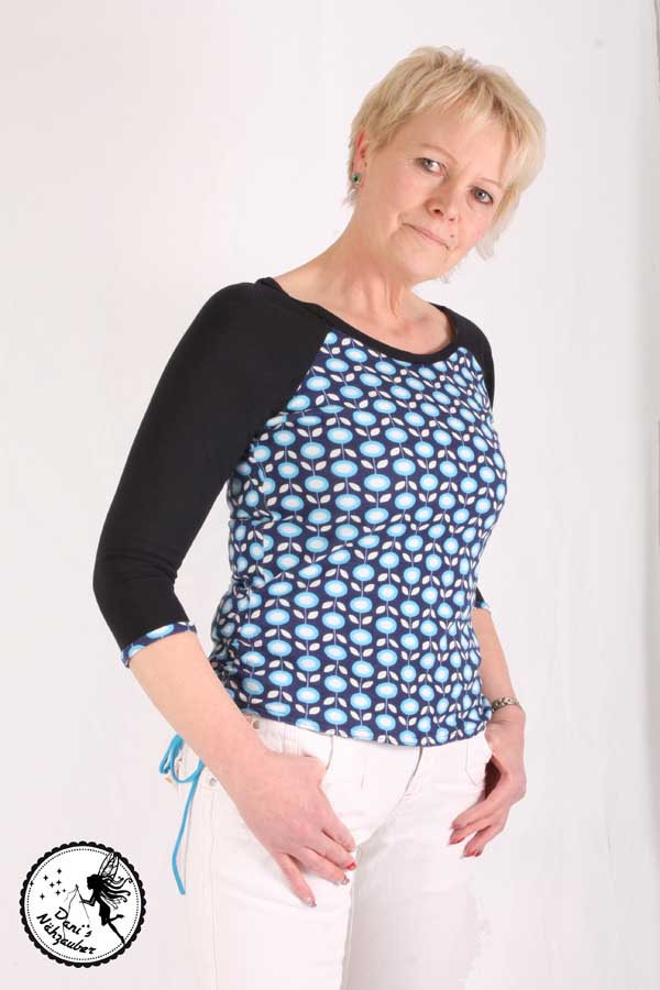 Beim Schnittmuster RAFFINESSA handelt es sich um ein klassisches Raglan-Damenshirt mit raffinierter Seitenschnürung.