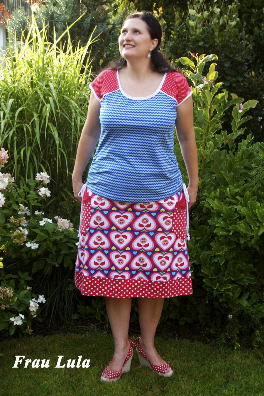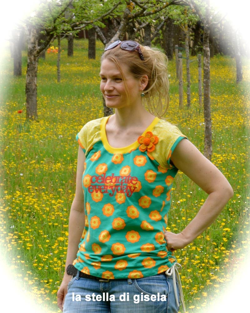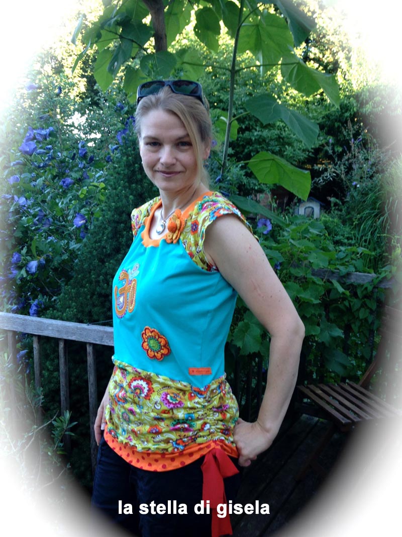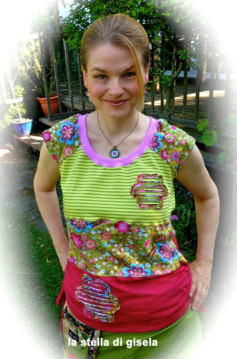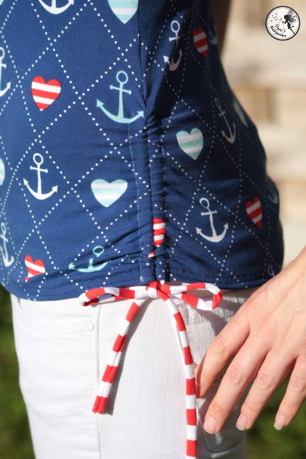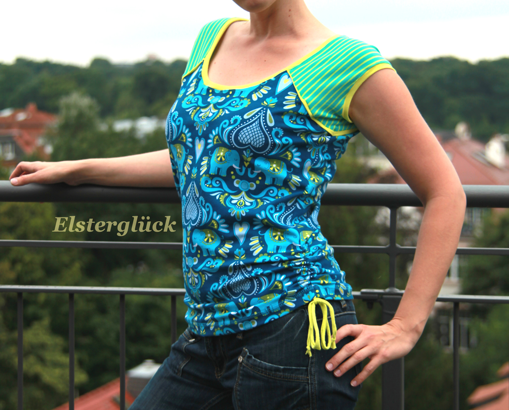 Beim Schnittmuster RAFFINESSA handelt es sich um ein klassisches Raglan-Damenshirt mit raffinierter Seitenschnürung.